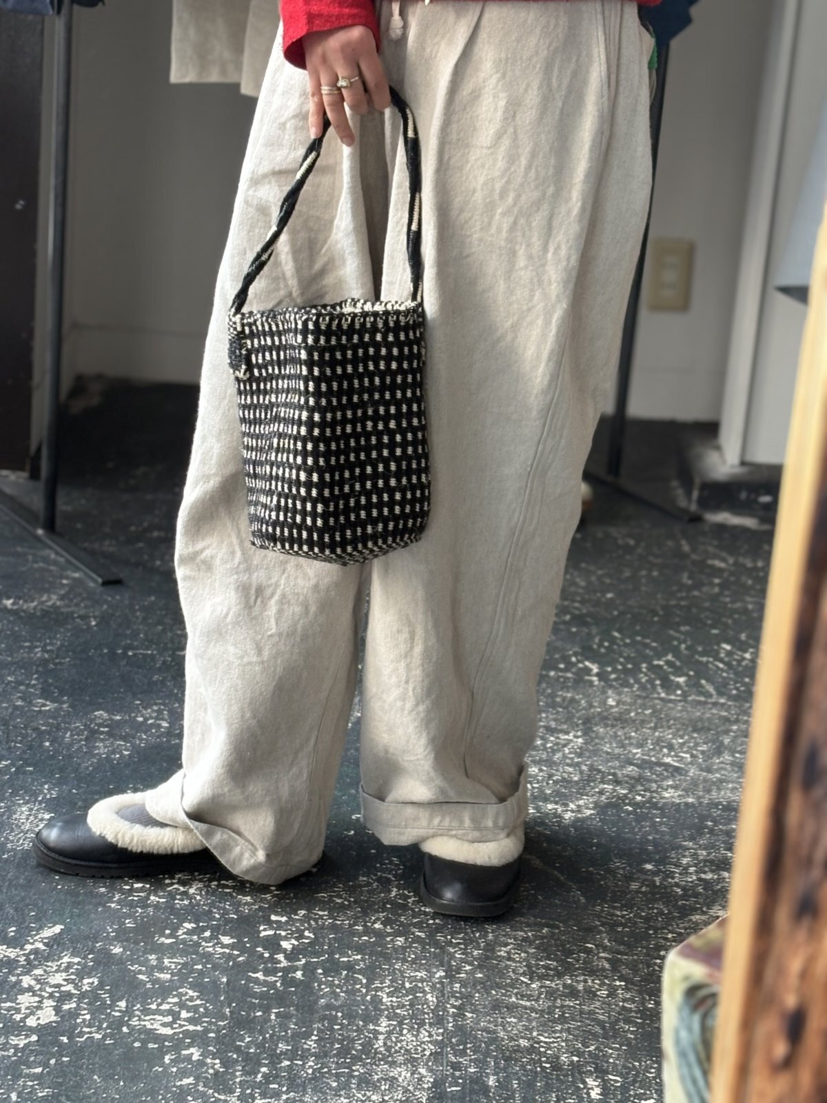 こちらは財布とケータイが入ってお散歩にもちょうどいいサイズ。