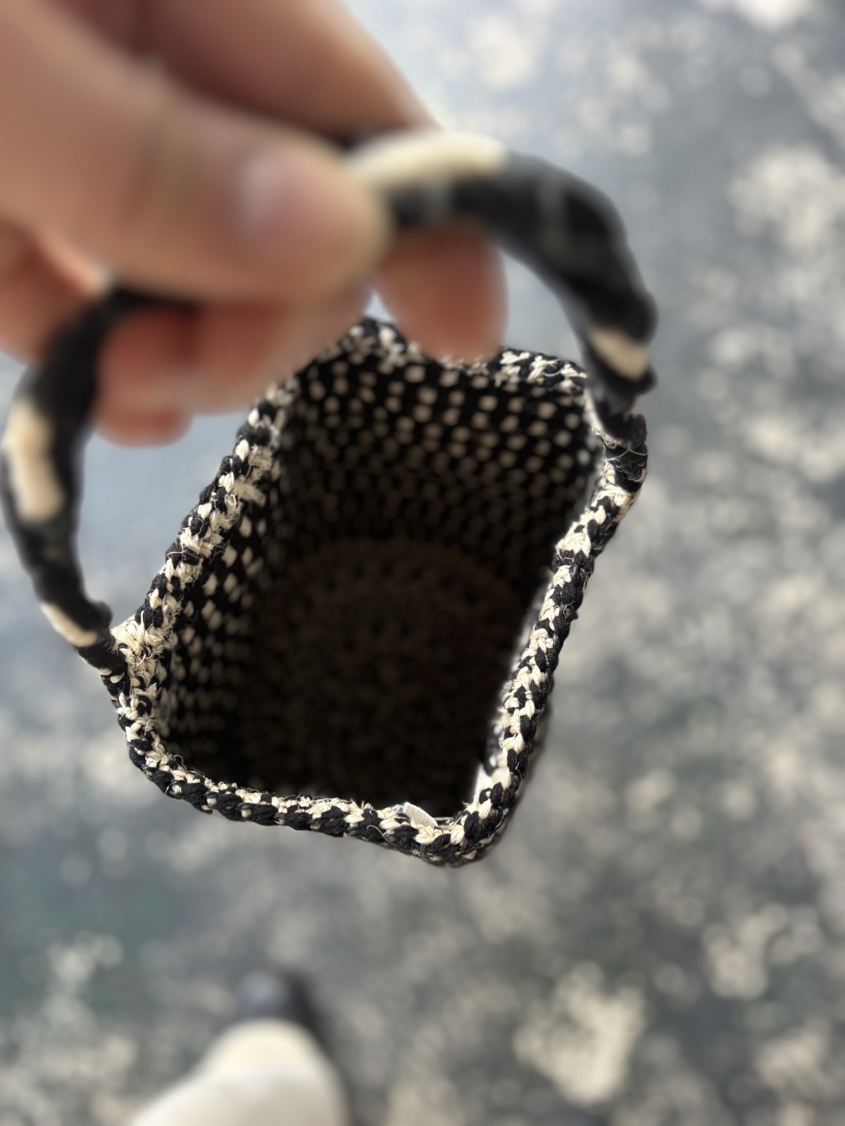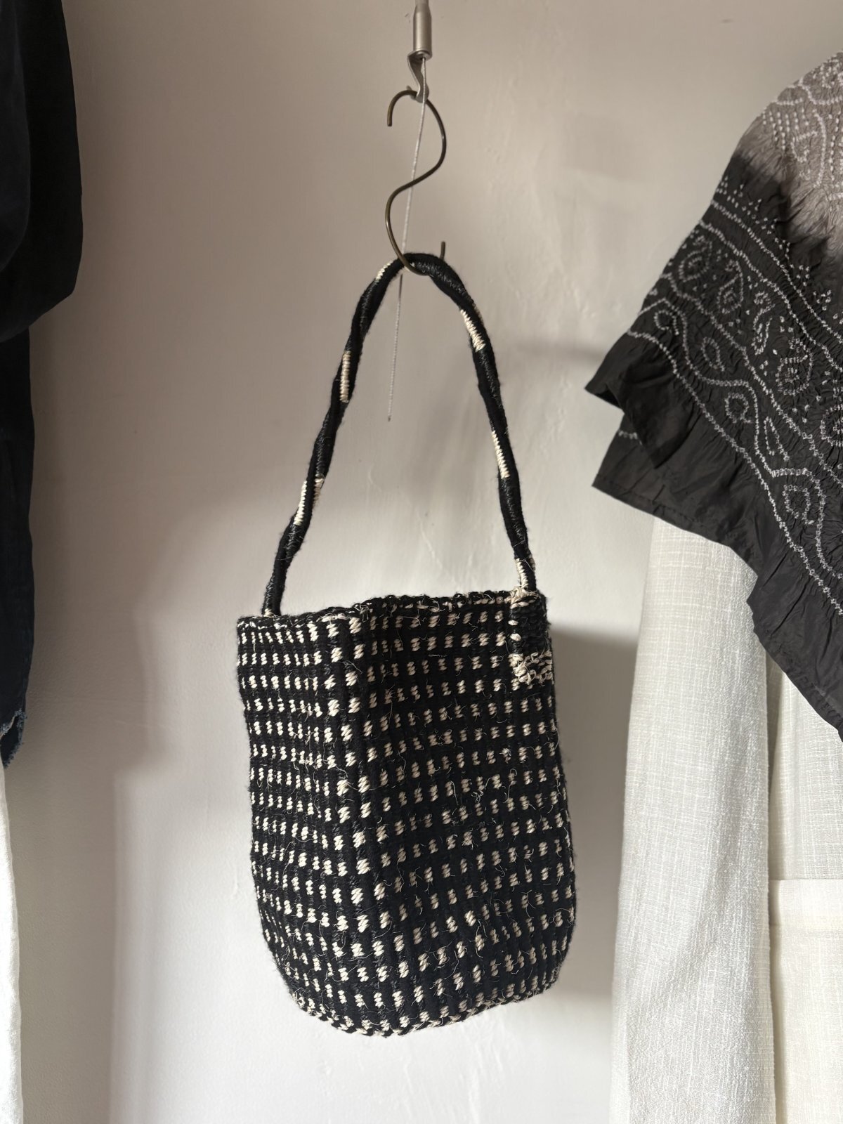 サイザル麻で編まれたギンガムチェックが可愛いミニバッグ。